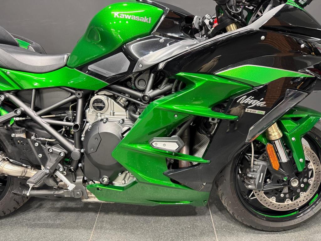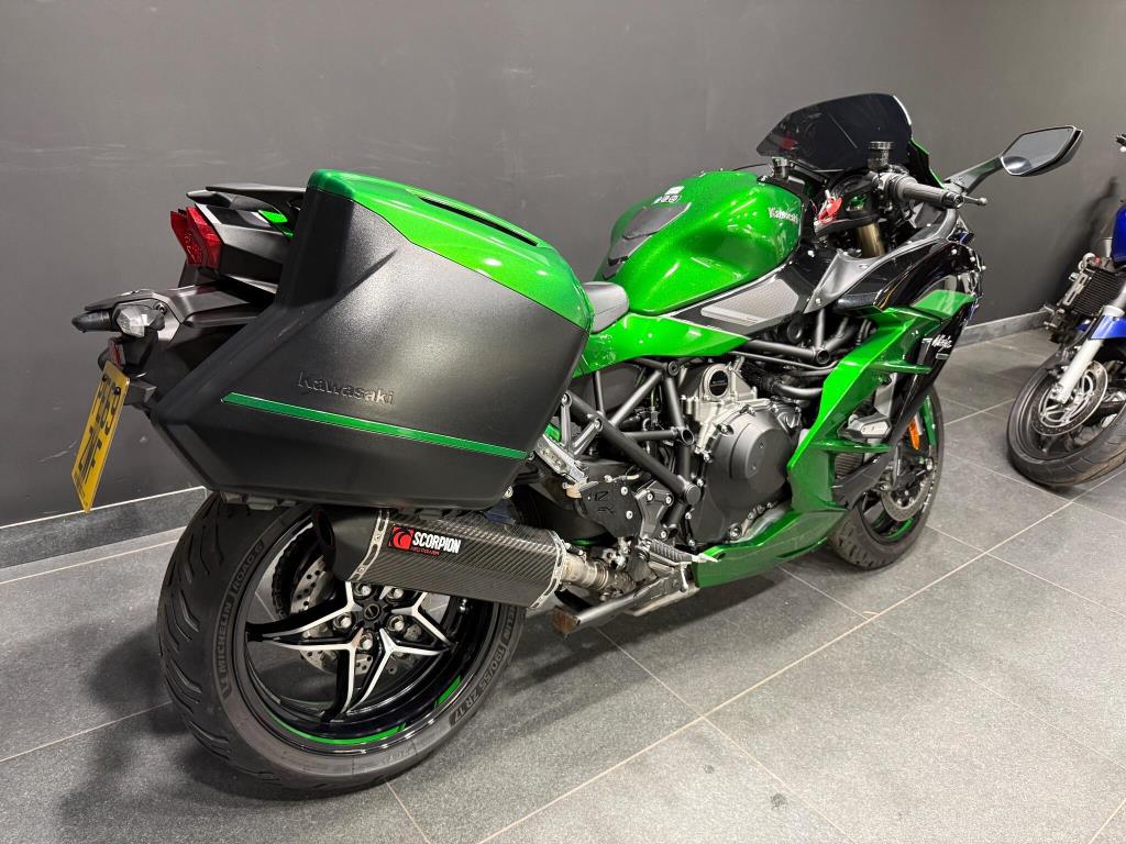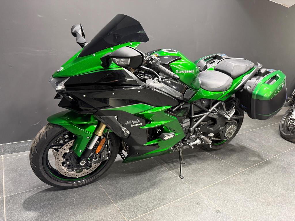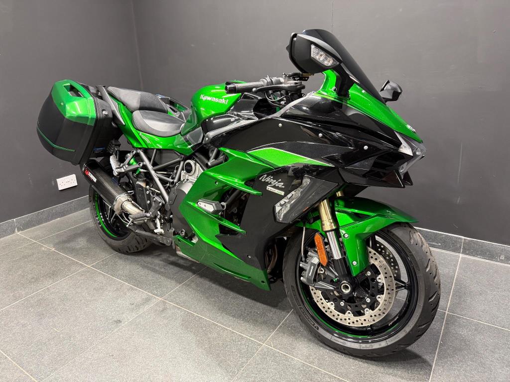 2019 Kawasaki H2SX SE: Stunning condition SE machine finished in metallic kawasaki green, with panniers, loads of service history, complete with awesome sounding supercharger, scorpion carbon exhaust, traction control, rider modes, ABS, LED lights, heated grips, cruise control, full colour TFT dash and more. All books and keys are present.