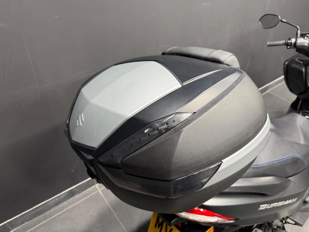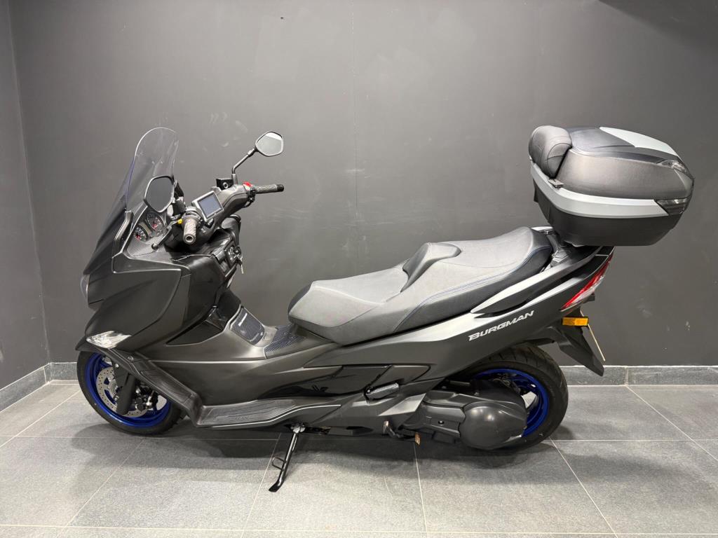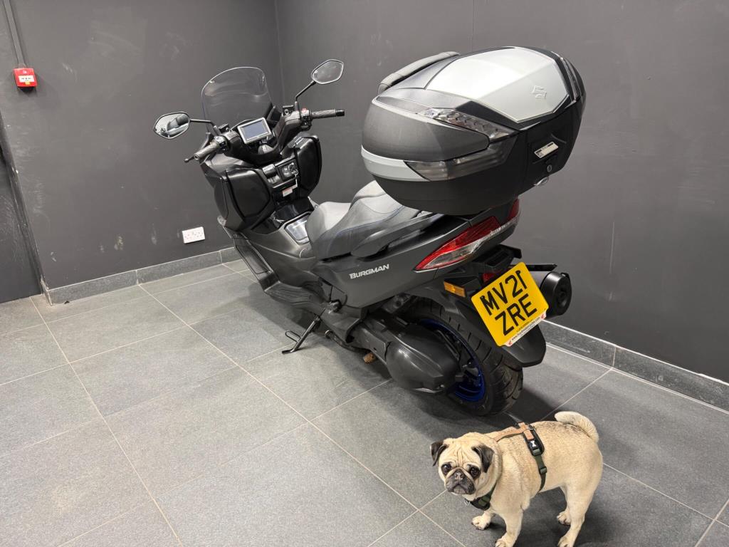 2021 Suzuki Burgman 400: Excellent condition machine finished in satin black with blue wheels, and fitted with a Suzuki genuine top box, as well as a Garmin sat nav. With only 1893 miles and two service stamps, all books, data tag and keys are present the Burgman is a great machine to ride around with a light weight, and low centre of gravity it makes eating up the miles a breeze.