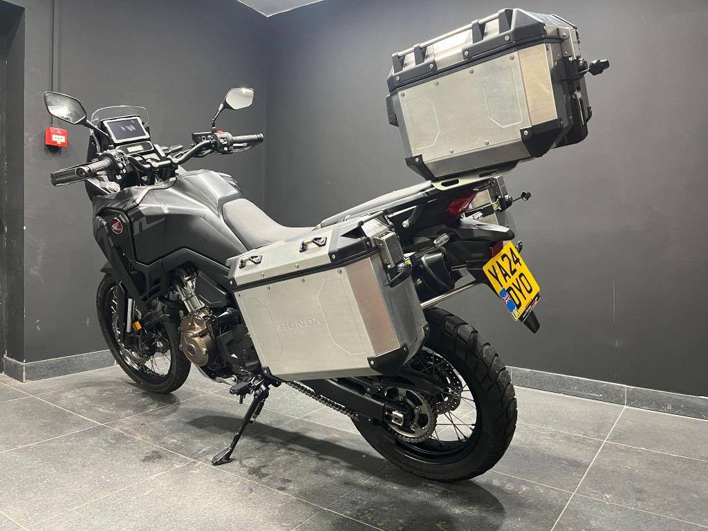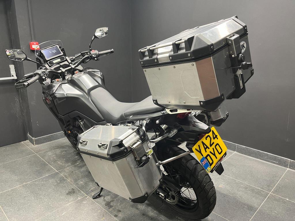 Honda Crf1100 Africa Twin Dct (Automatic ) 2024 bike in excellent condition , Finished in Matt Cynos Grey And fitted with a full set of Factory Alloy luggage . this is the excellent Dct transmission model , giving the option of automatic gear changes or manual gear change . a excellent adventure bike with some great features including Tft touch screen display , Power modes , Apple Carplay and much more .