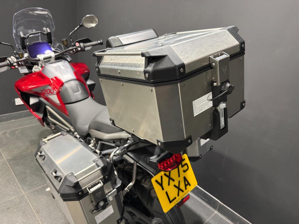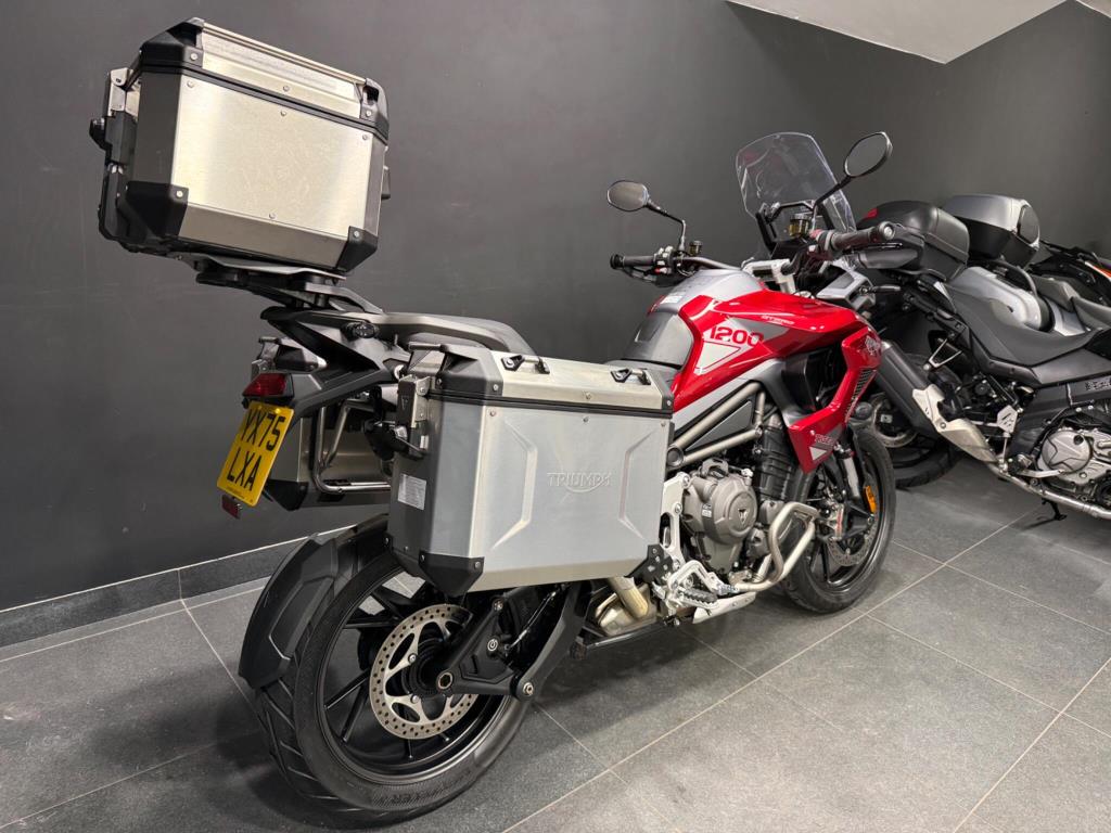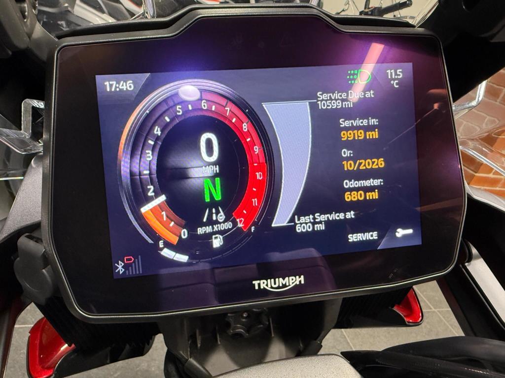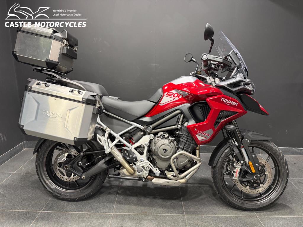 2025 Triumph Tiger 1200 Gt Pro: Stunning one owner machine finished in metallic red with only one owner from new, an absolutely top spec Tiger with full Triumph Aluminium boxes, LED spots, Engine guards, heated grips and seats, full colour tat dash, cruise control, Showa suspension with electronic adjustment, brembo brakes, traction control, rider modes, ABS, LED highs, quick shifter and more. The bike is in exceptional condition (as you would expect given the low mileage!) and has had its running in serviced performed at Triumph so is ready to tour!