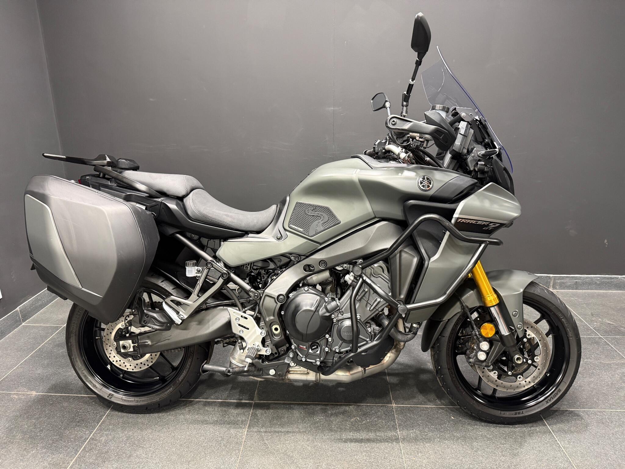 2023 Yamaha Tracer 9 GT: Excellent condition machine finished in Satin Tech Kamo, The Tracer 9GT is a fantastic bike powered by Yamaha's top notch CP3 triple engine combined with KYB electronic suspension, TFT dash, heated grips, ABS, traction control, and a full suite of rider modes its an ideal sports touring platform, fast and exciting but with a comfortable riding position ideal for hours in the saddle. All books and keys are present. Includes a full 12 months MOT, fresh service and warran...